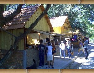 restaurantes, despensas, puestos de artesanos, entretenimientos